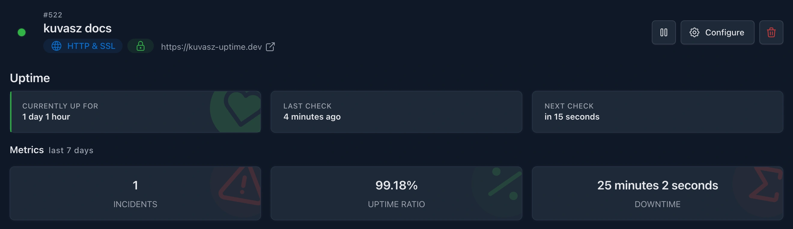 ) and on the UI, so you can easily get an overview of the effective configuration. - A live demo is available at demo.kuvasz-uptime.dev where you can try out the latest features of Kuvasz without setting up your own instance. Further details, credentials here.